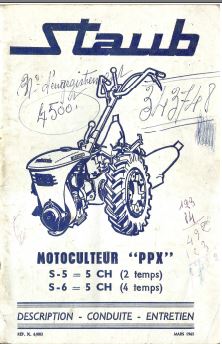 manuels d'entretien revues techniques catalogues de pièces pour motoculteurs Staub depuis les premiers PP jusqu'aux années 90 33 documents en compilation