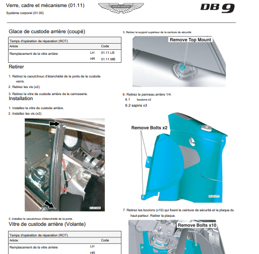 Manuel d'atelier Aston Martin DB9 2005 en français