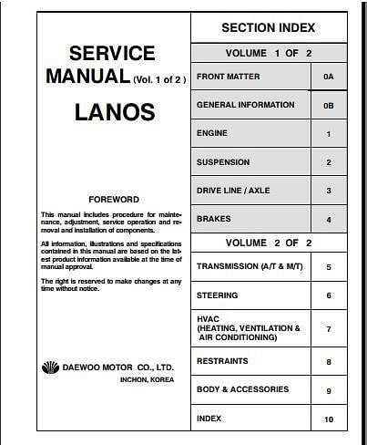manuel d'atelier Daewoo lanos 2000 pages en anglais